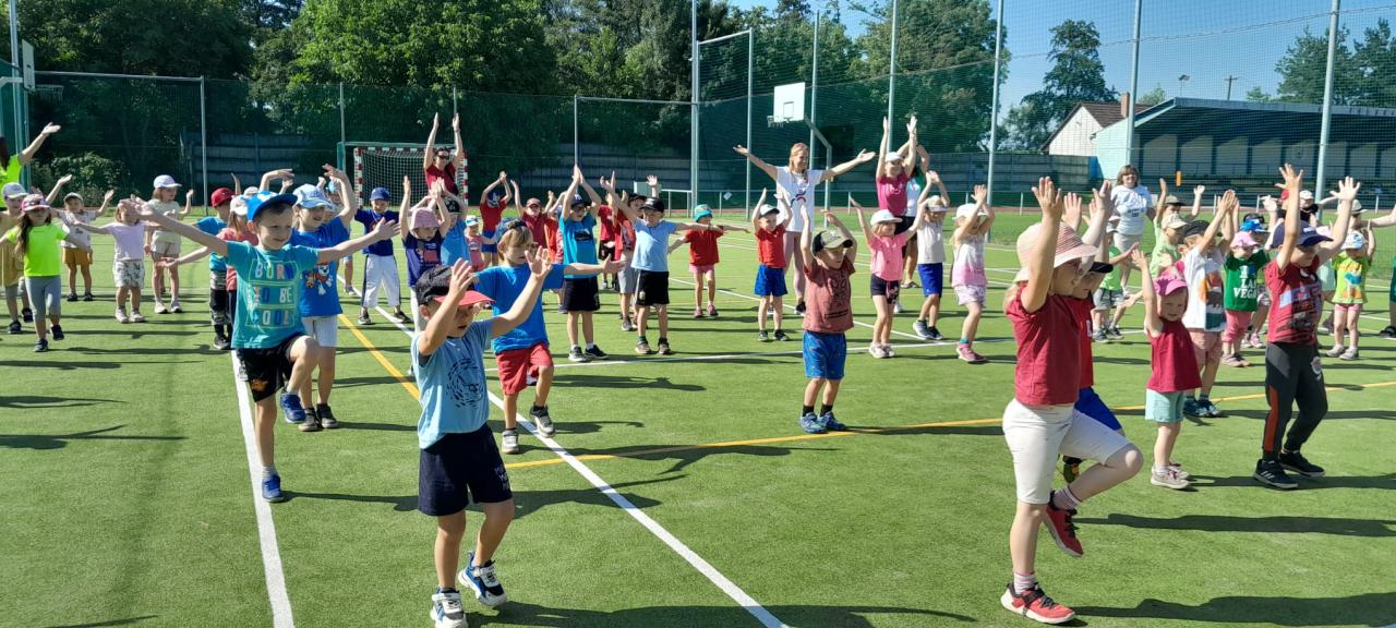 Slunečné počasí, barevná trička, týmový duch a hlavně nadšení malých sportovců vytvořily skvělou atmosféru. Dopoledne jsme zahájili krátkou sportovní básničkou, která děti naladila na to nejdůležitější – radost z pohybu, spolupráci a dodržování pravidel fair play.