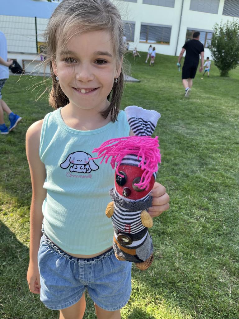 Poslední společná akce našeho školního roku proběhla v pátek 13. Pro nás to nebyl nešťastný den, ale jeden ze šťastných dní, kdy jsme s kamarády a rodiči strávili odpoledne. Všechna oddělení se zapojila do her, které nám připravily naše paní vychovatelky. Téma bylo jasné – zvířátka a ponožky. Po 15. hodině za námi začali chodit rodiče. Společně jsme si opékali buřty, jablka, chleba a zpívali s kytarou. Pokud se nám chtělo, mohli jsme si vyrobit ponožkové zvířátko. Dokonce se k nám přidali i rodiče. Děkujeme za krásné odpoledne. Letošní Rok zvířat byl úžasný – plný nových kamarádů a zážitků. Už se těšíme, co pro nás připravily paní vychovatelky na další školní rok.