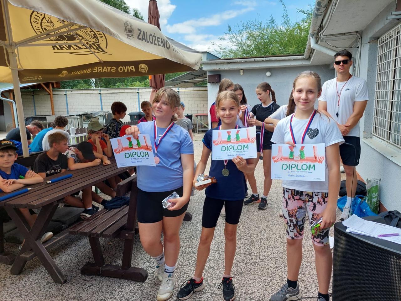 Dívky: Nejvíce medailí získala Aneta Lerchová (3x stříbro). Vítězky jednotlivých disciplín byly Anna Rohrerová (60 m – 09.18), Sofie Petříková – rekord závodu ve skoku dalekém (423 cm) a Markéta Procházková, která hodila raketkou rekordních 28.40 m.