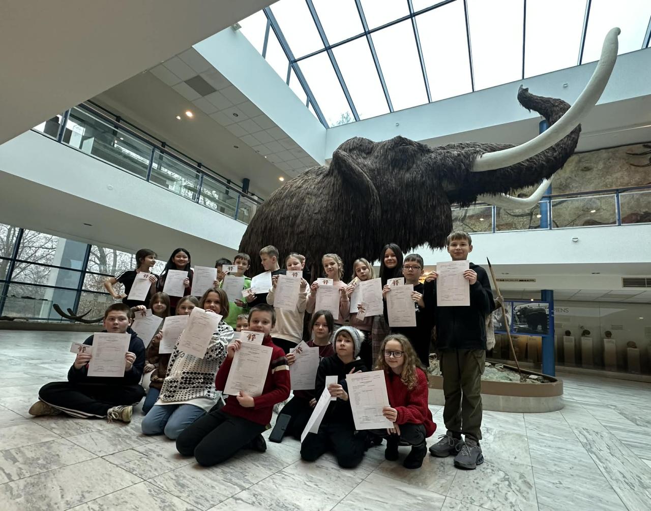 Pro pololetní vysvědčení si žáci 4. ročníku tentokrát udělali cestu do Brna. V expozicích muzea Anthropos se nejprve dozvěděli mnoho zajímavých informací o vývoji živočišného druhu HOMO SAPIENS. Člověkem moudrým je každý z našich čtvrťáků – o tom svědčí jejich krásná vysvědčení. A protože pololetní hodnocení nebereme na lehkou váhu, odborným dohledem byl pověřen tvor respekt vzbuzující – mamut.