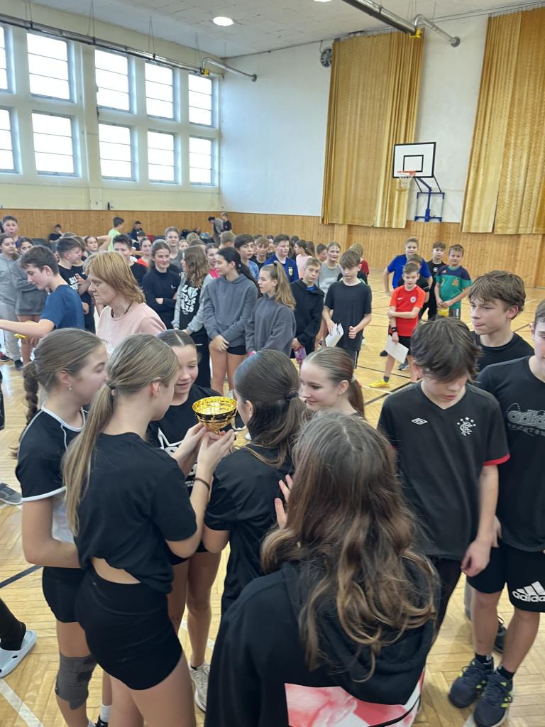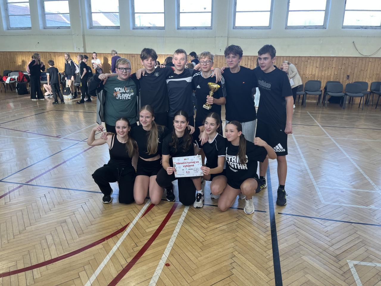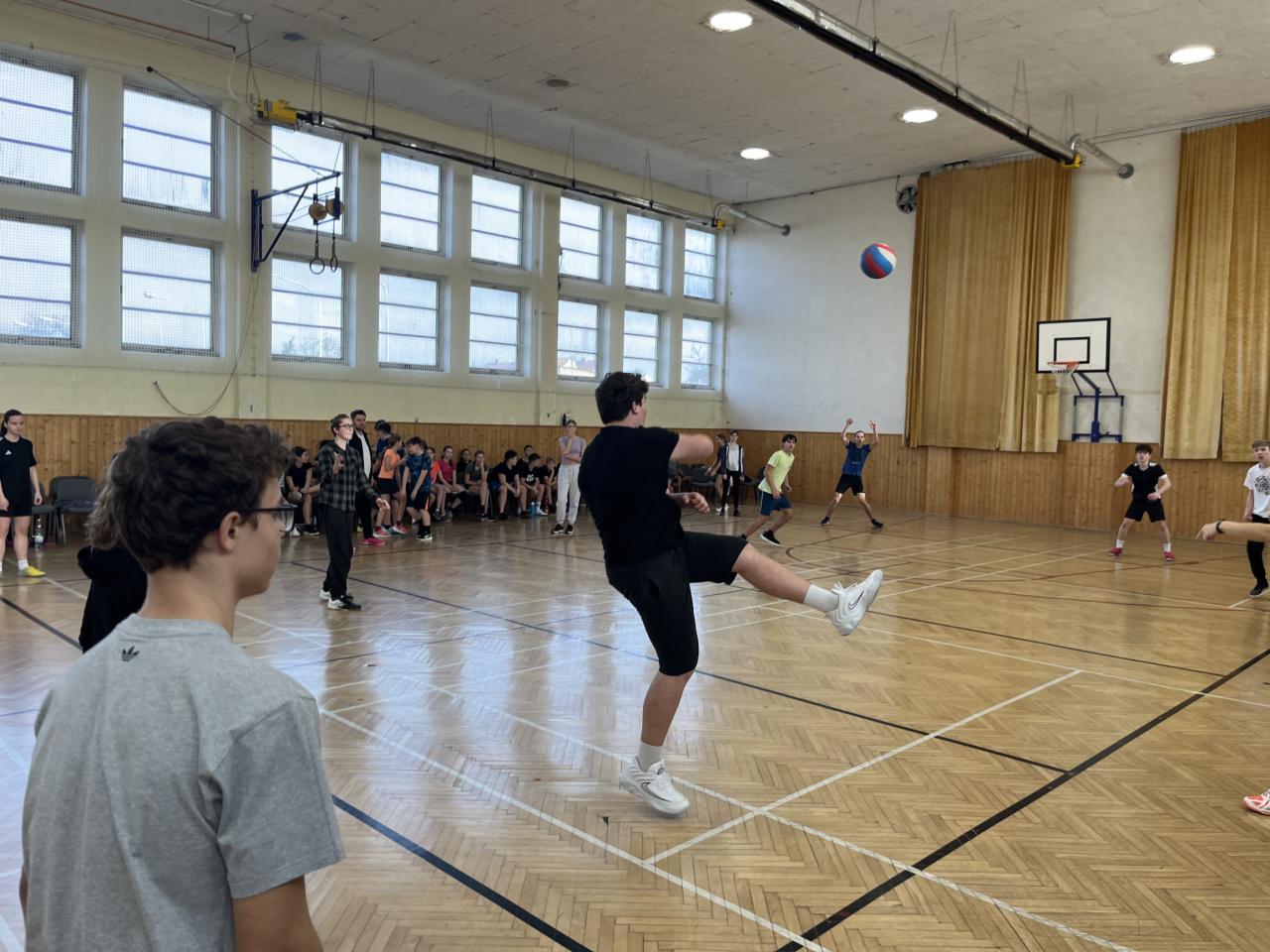 Turnaj nebyl jen o sportu, ale také o úžasné atmosféře, která zaplnila halu. O hudbu v pauzách a během střídání se postaral Zdenek Nováček (9.A), žáci fandili svým třídám s transparenty a nechyběla ani podpora třídních učitelek. Celá škola turnajem žila už dva týdny předem, což ukázalo, jak je sport mezi žáky oblíbený.