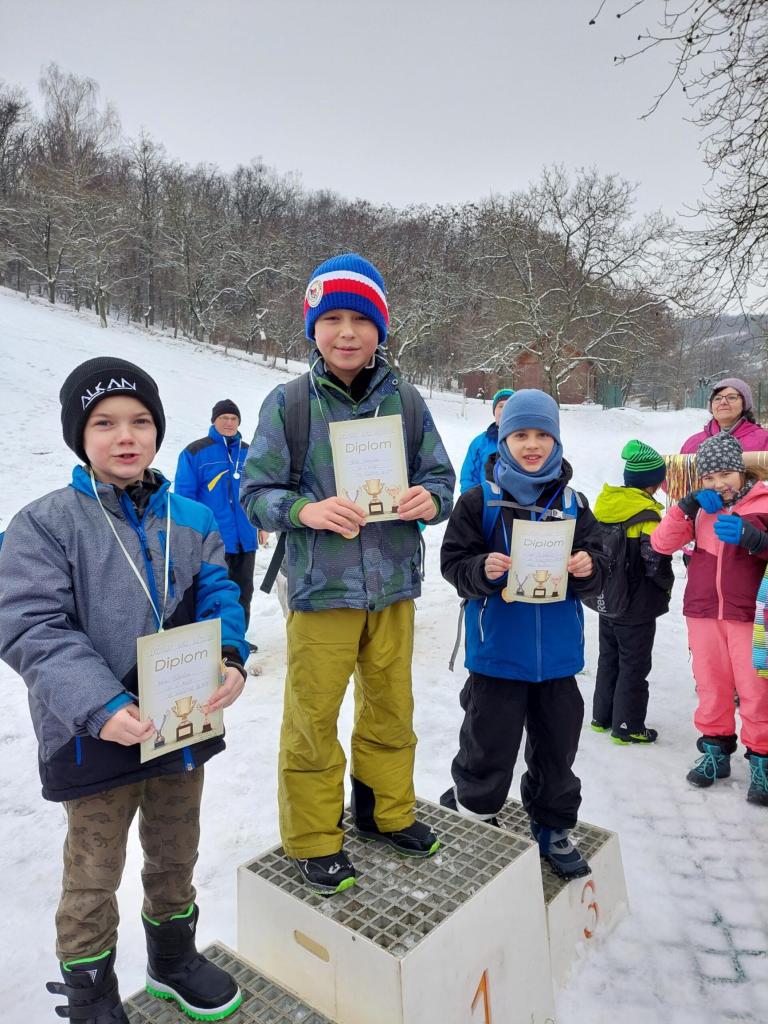 V pondělí 12. prosince jsme jeli po roce autobusem a minibusem do Němčiček. Po půl hodině jsme dorazili na místo. Instruktoři nás rozdělili do 3 družstev a vyrazili jsme na svah. S instruktory byla legrace. Asi po jedné hodině lyžování jsme měli vždy přestávku na svačinu. Kdo neměl svačinu z domu, mohl si něco koupit v bufetu. Po přestávce jsme šli opět lyžovat. V úterý nám dokonce zasněžili celý kopec, tak se všem dobře lyžovalo. Od středy už nám padal opravdový sníh. V pátek se konaly závody ve slalomu. Dráha začínala nahoře na kopci. Za kluky vyhrál závod Marek Novotný a za holky Saša Navrátilová, kteří obhájili loňské vítězství. Na dalších místech byli Patrik Pláteník a Jonáš Rychlý, Markéta Procházková se sestrou Kačkou a Julie Tomková. Všichni jsme nakonec dostali čokoládovou medaili, která byla vynikající! Nejrychlejší lyžaři získali i diplom. Bylo to super!