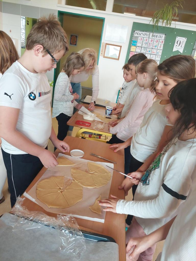 Posléze jsme začali různě soutěžit. Např. v jízdě na koni, pečení svatomartinských rohlíčků atd. Soutěže končí a rohlíčky se jdou péct. Příchutě rohlíčků byly: milka, nutella, povidla, tvaroh a oříšky. Po naplnění rohlíčků jsme šli pracovat na různých úkolech a aktivitách, tvořili jsme různé výrobky, třeba svatomartinskou husu, čtení o svatém Martinovi, podkovičku, svatomartinskou sklizeň vína, lampión atd. Na závěr jsme si spočítali, jaký tým, co udělal a neudělal. Potom jsme se rozhodli, co dáme na nástěnku a co si vezmeme domů na výzdobu. Pochutnali jsme si na rohlíčcích a ohodnotili tento den, jaký byl. Podle mě to byl nejlepší den ve škole za tento rok.