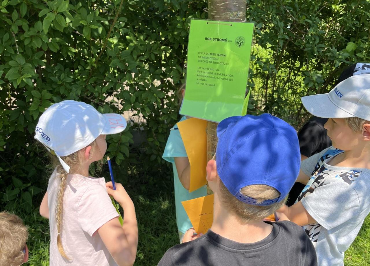 „Poklad naleznete na místě poblíž vody, kde roste strom, z jehož větví se pletou košíky.“ K otevření pokladu jsme potřebovali rozluštit číselný kód. K tomu nám pomohly názvy stromů a jejich pořadí, jak jsme si o nich během roku povídali.